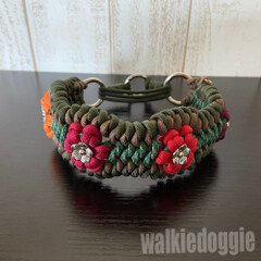 パラコードワイドフラワー首輪#517 中型犬〜超大型犬向きハーフチョーク